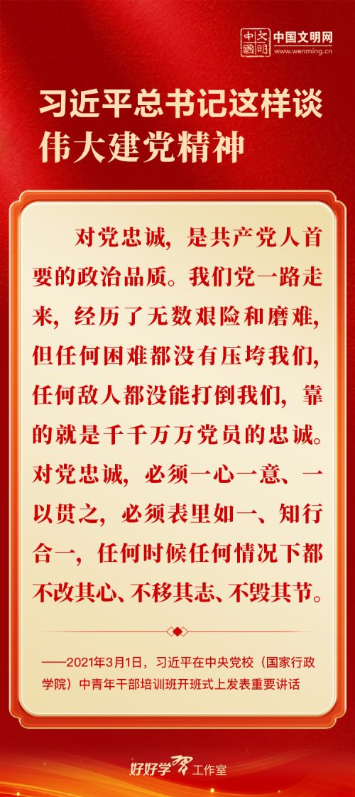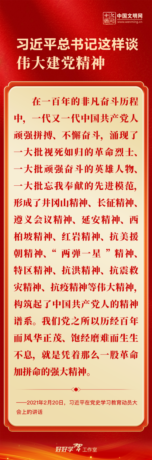历史川流不息,革命精神代代相传。习近平总书记在庆祝中国共产党成立100周年大会上,首次提出伟大建党精神:坚持真理、坚守理想,践行初心、担当使命,不怕牺牲、英勇斗争,对党忠诚、不负人民。在中国共产党成立104周年之际,让我们重温学习伟大建党精神,汲取前行力量。